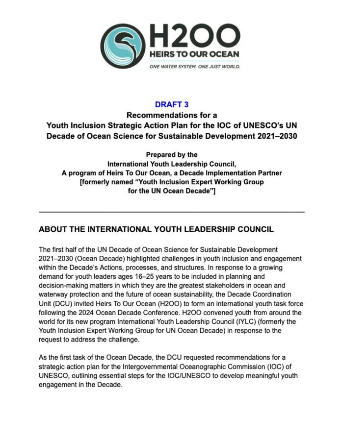 REview the plan and sign onHeirs To Our Ocean is a Decade Implementation Partner of UNESCO-IOC’s Ocean Decade. The International Youth Leadership Council, as a program of Heirs To Our Ocean, is an endorsed Decade Action.